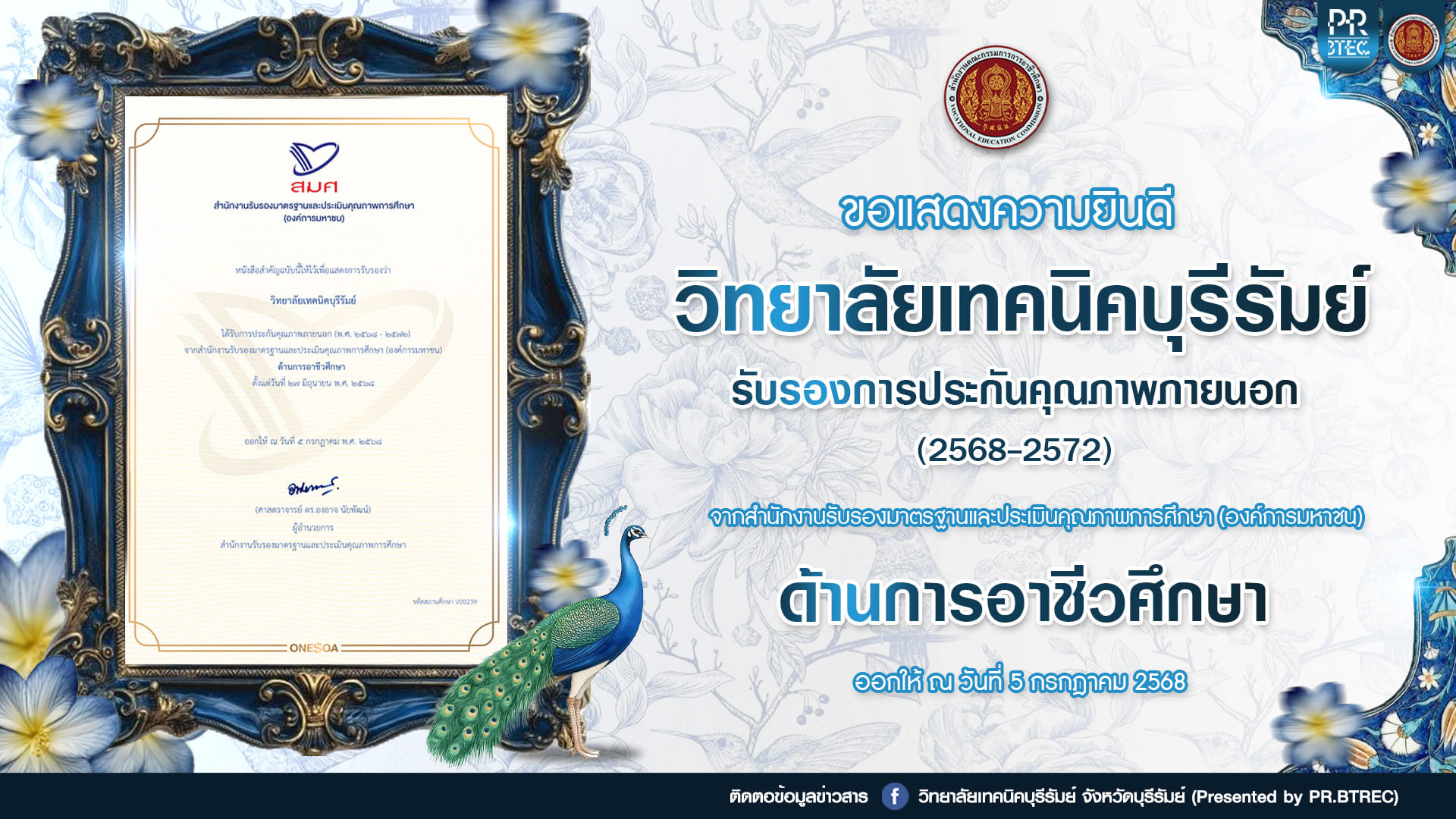 สมศ. รับรองการประกันคุณภาพภายนอก พ.ศ. 2568-2572...