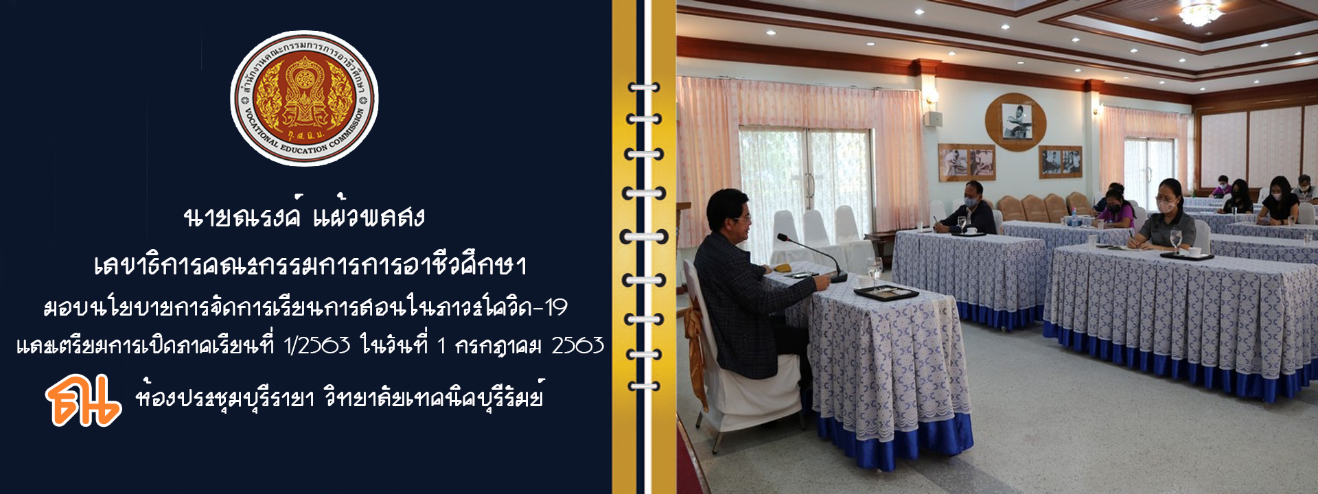 นายณรงค์ แผ้วพลสง เลขาธิการคณะกรรมการการอาชีวศึกษา มอบนโยบาย การจัดการศึกษา 4 รูปแบบ รับเปิดเทอม 2563 และการปรับและพัฒนาการเรียนการสอนแบบออนไลน์เต็มรูปแบบ...