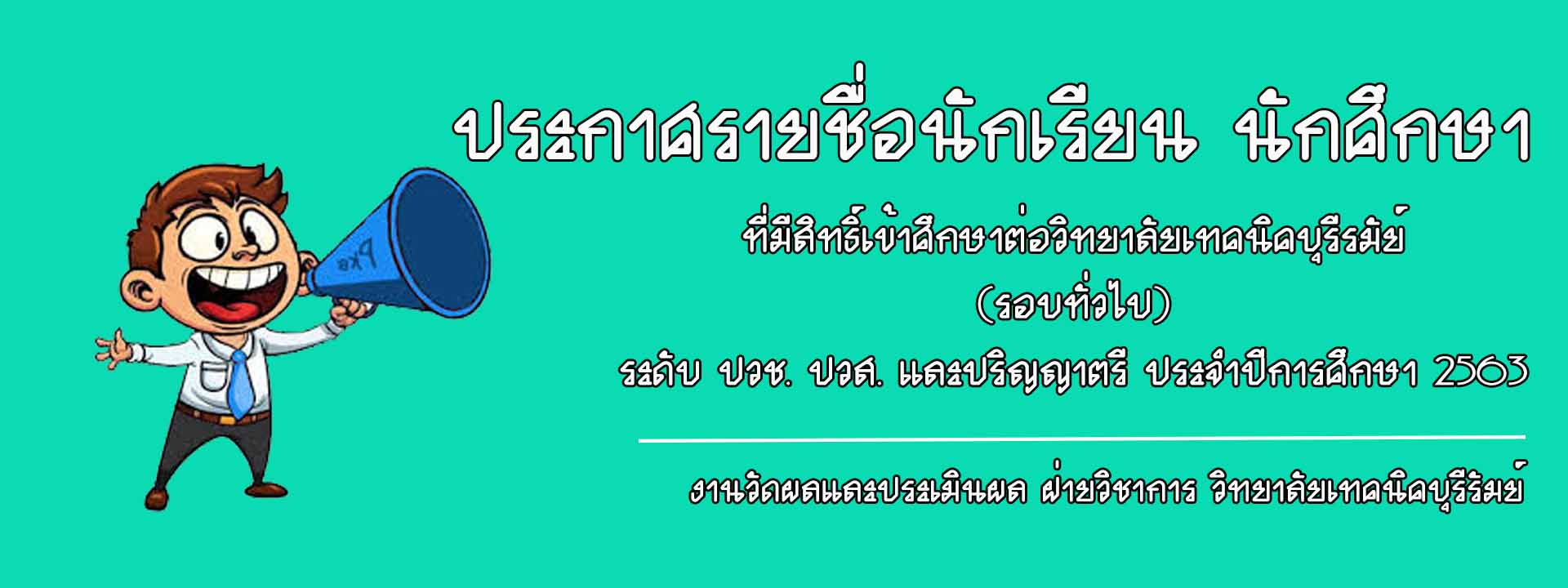 ประกาศรายชื่อนักเรียน นักศึกษา ที่มีสิทธิ์เข้าศึกษาต่อวิทยาลัยเทคนิคบุรีรัมย์ (รอบทั่วไป) ประจำปีการศึกษา 2563...