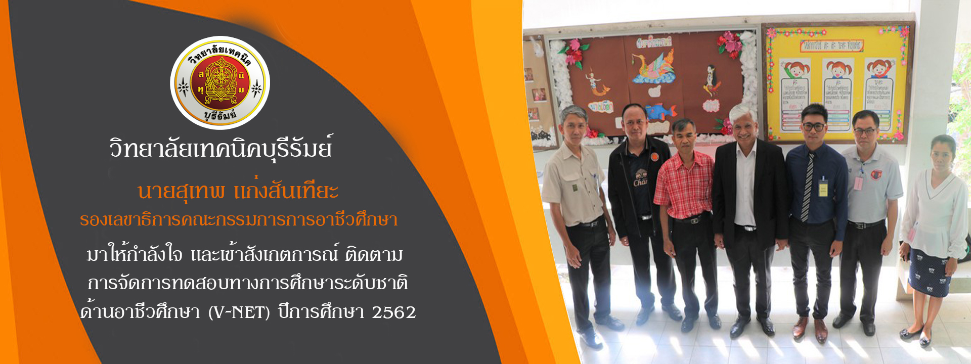 นายสุเทพ แก่งสันเทียะ รองเลขาธิการคณะกรรมการการอาชีวศึกษา มาให้กำลังใจ และเข้าสังเกตการณ์ ติดตาม การจัดการทดสอบทางการศึกษาระดับชาติด้านอาชีวศึกษา (V-NET) ปีการศึกษา 2562...