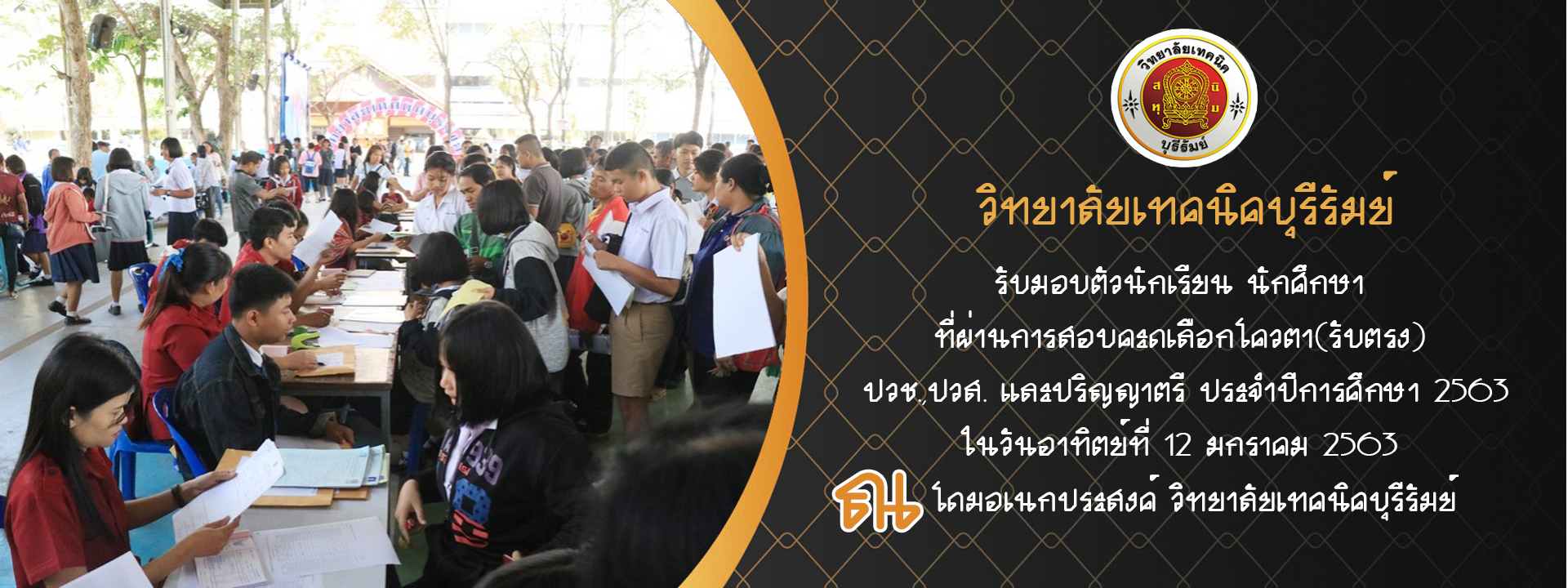 วิทยาลัยเทคนิคบุรีรัมย์รับมอบตัวนักเรียน นักศึกษา ที่ผ่านการสอบคะดเลือกโควตา(รับตรง) ปวช.,ปวส. และปริญญาตรี ประจำปีการศึกษา 2563 ในวันอาทิตย์ที่ 12 มกราคม 2563 ณ โดมอเนกประสงค์ วิทยาลัยเทคนิคบุรีรัมย์...