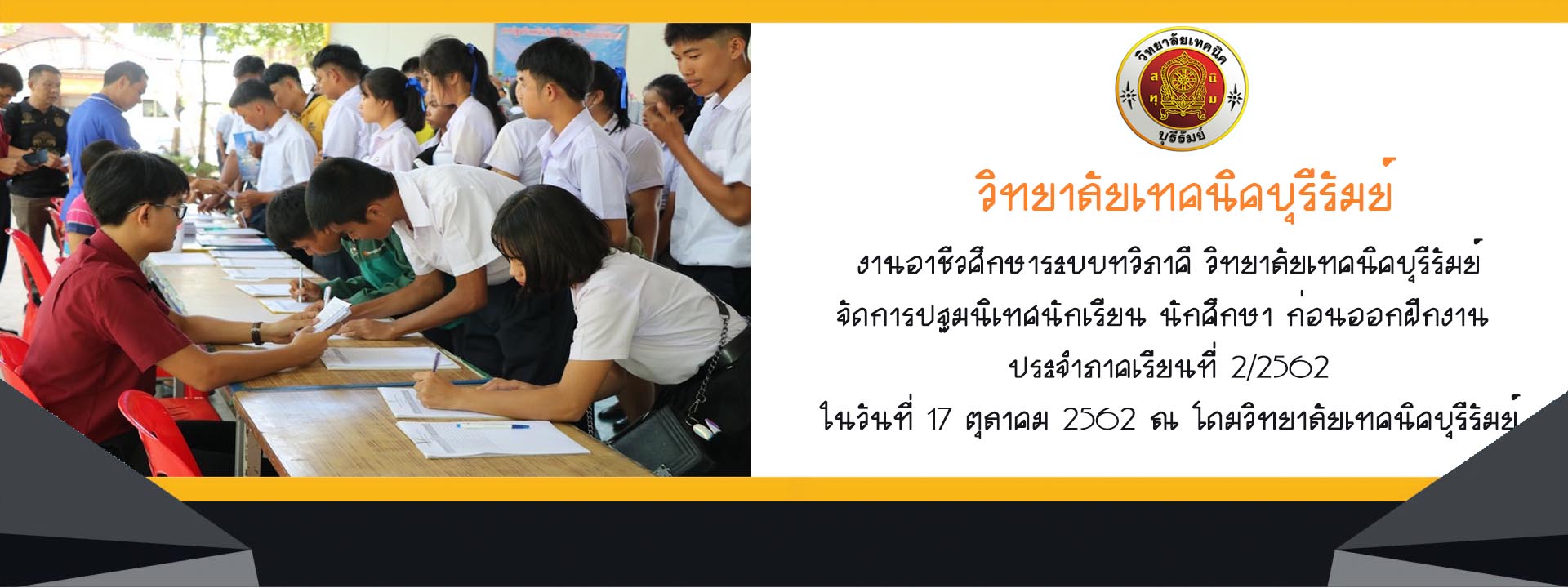 จัดการปฐมนิเทศนักเรียน นักศึกษา ก่อนออกฝึกงาน ประจำภาคเรียนที่ 2/2562 ในวันที่ 17 ตุลาคม 2562 ณ โดมวิทยาลัยเทคนิคบุรีรัมย์...