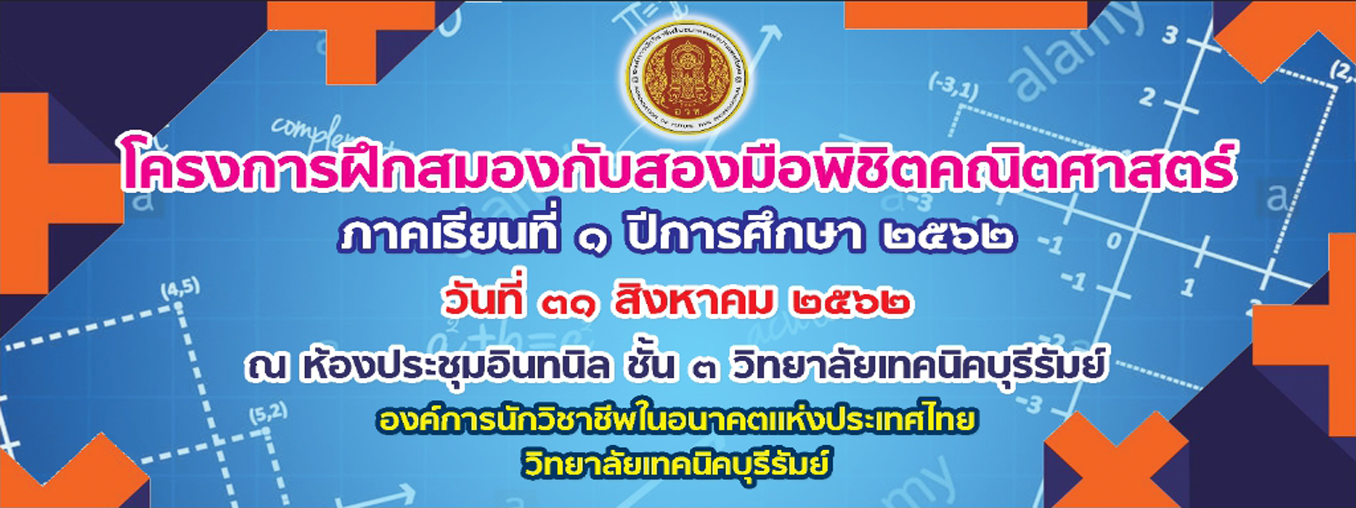 องค์การนักวิชาชีพในอนาคตแห่งประเทศไทย วิทยาลัยเทคนิคบุรีรัมย์ จัดโครงการฝึกสมองกับสองมือพิชิตคณิตศาสตร์ ภาคเรียนที่ 1 ปีการศึกษา 2562 ในวันที่ 31 สิงหาคม 2562 ณ ห้องประชุมอินทนิล ชั้น 3 วิทยาลัยเทคนิคบุรีรัมย์...