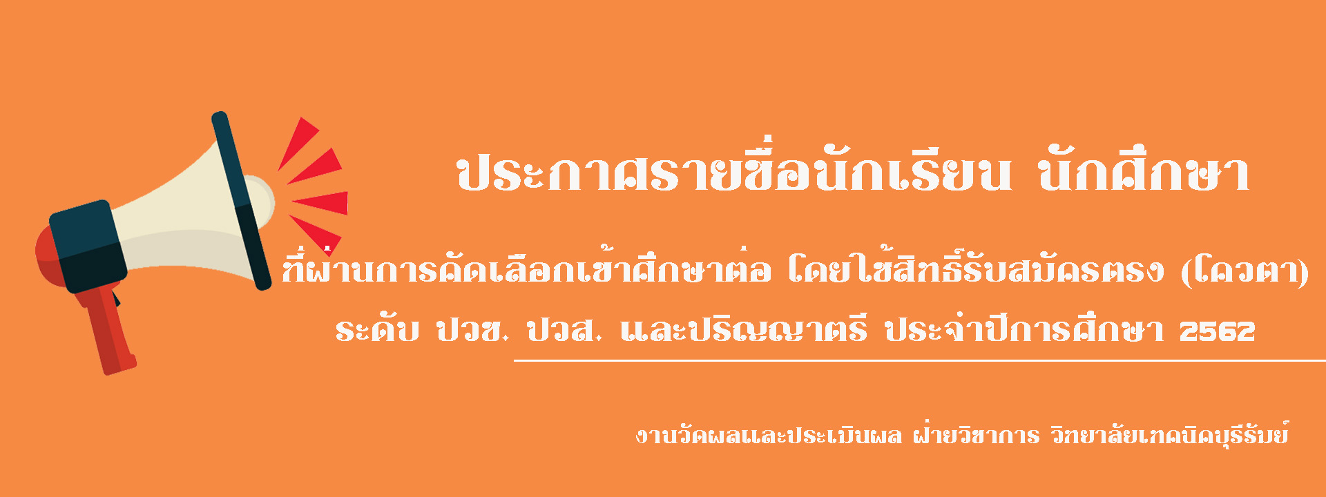 ประกาศรายชื่อนักเรียน นักศึกษา ที่ผ่านการคัดเลือกเข้าศึกษาต่อ...