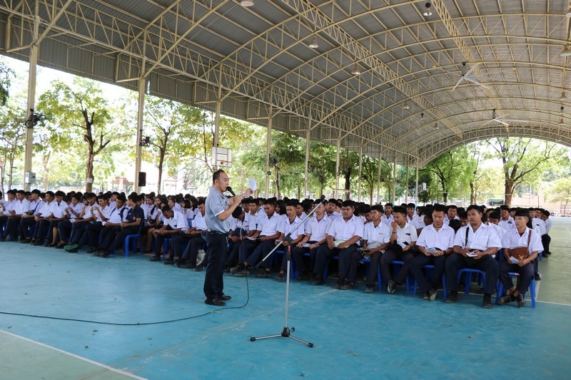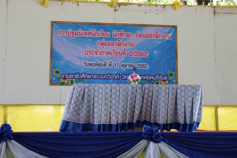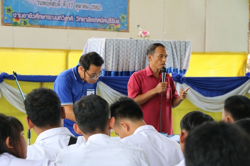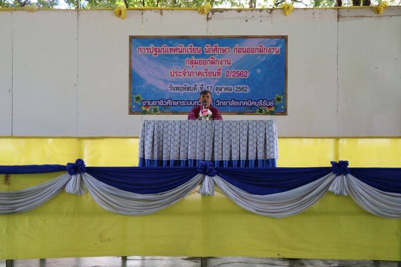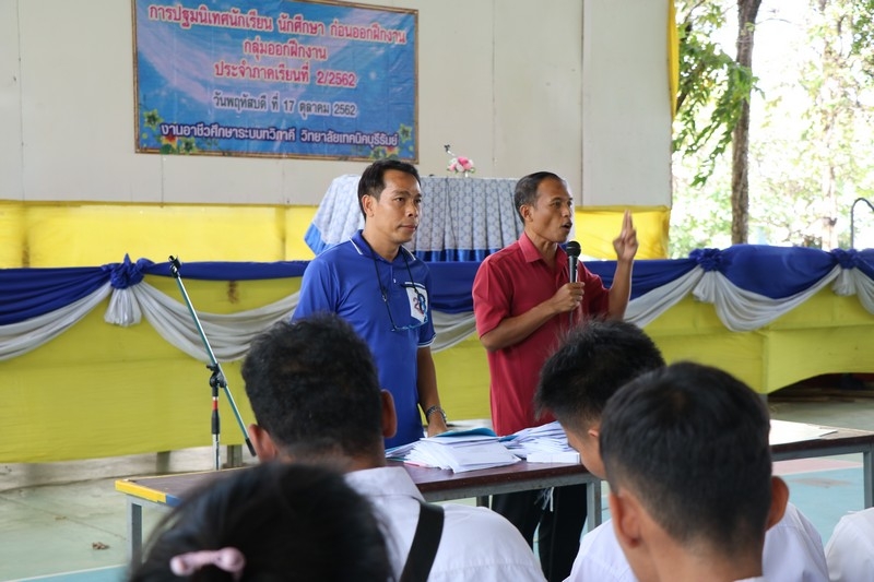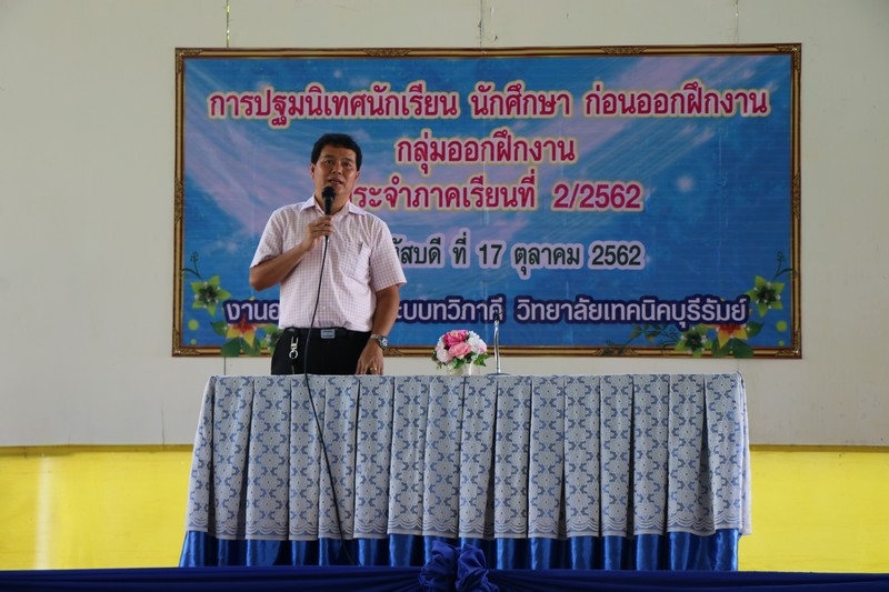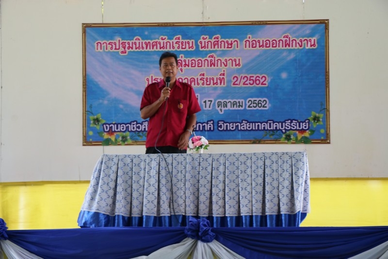 วันที่ 17 ตุลาคม 2562 งานอาชีวศึกษาระบบทวิภาคี วิทยาลัยเทคนิคบุรีรัมย์ จัดการปฐมนิเทศนักเรียน นักศึกษา ก่อนออกฝึกงาน ประจำภาคเรียนที่ 2/2562