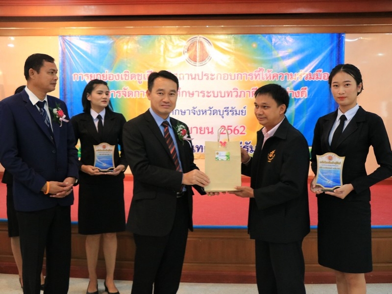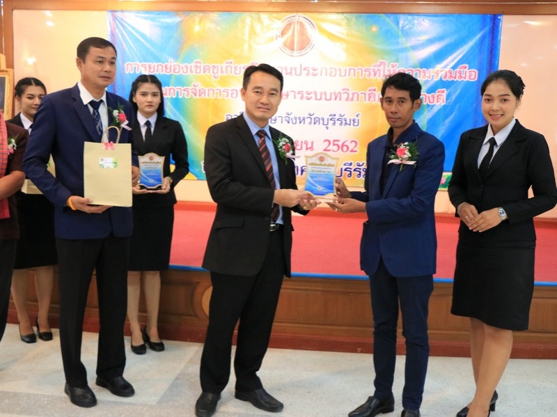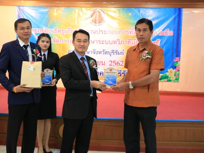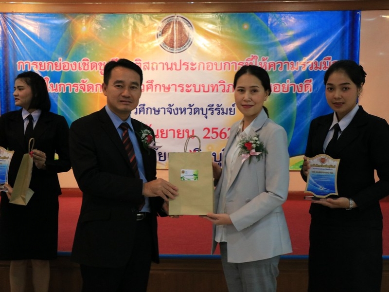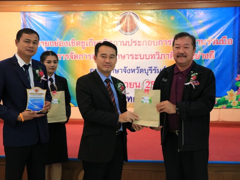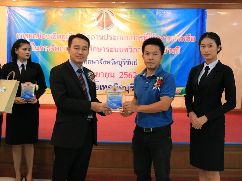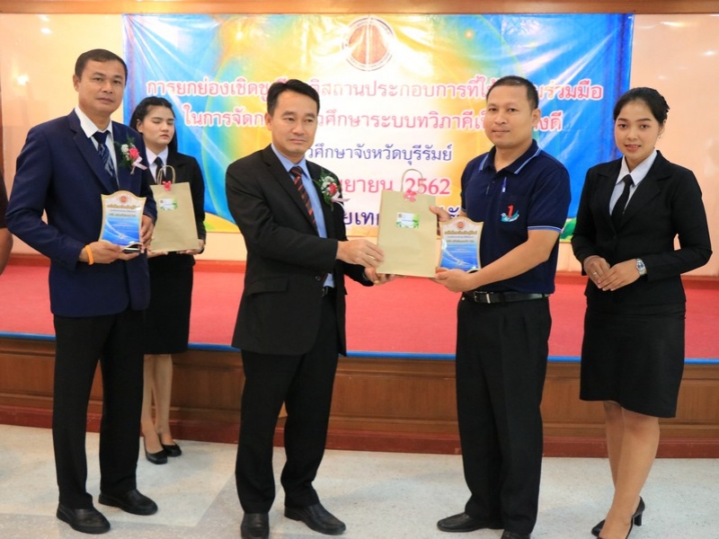 อาชีวศึกษาจังหวัดบุรีรัมย์ จัดพิธีมอบโล่ยกย่องเชิดชูเกียรติสถานประกอบการที่ให้ความร่วมมือในการจัดการอาชีวศึกษาระบบทวิภาคีเป็นอย่างดี ประจำปี 2562 ในวันที่ 24 กันยายน 2562 ณ ห้องประชุมบุรีรายา วิทยาลัยเทคนิคบุรีรัมย์