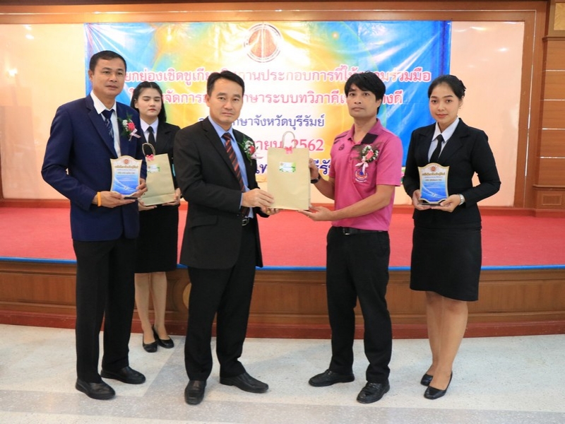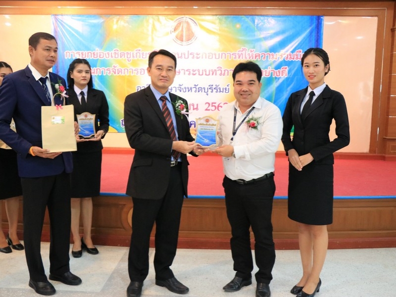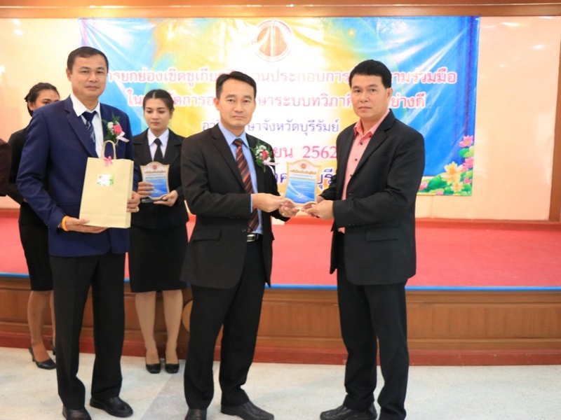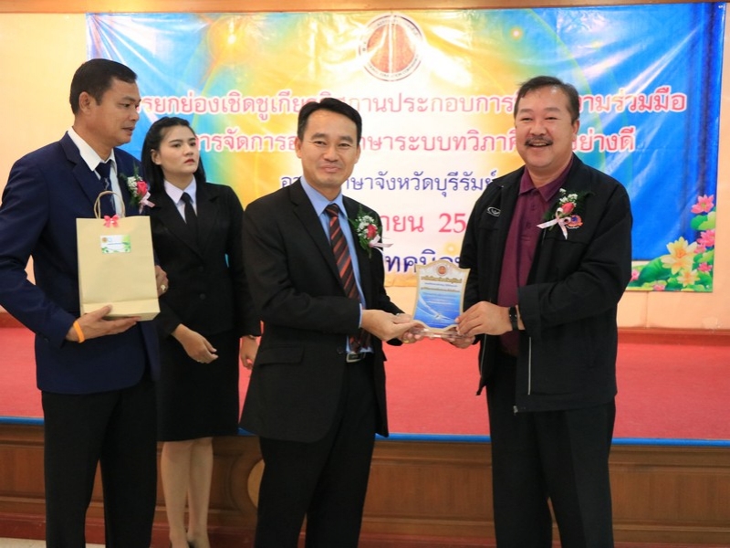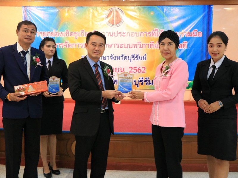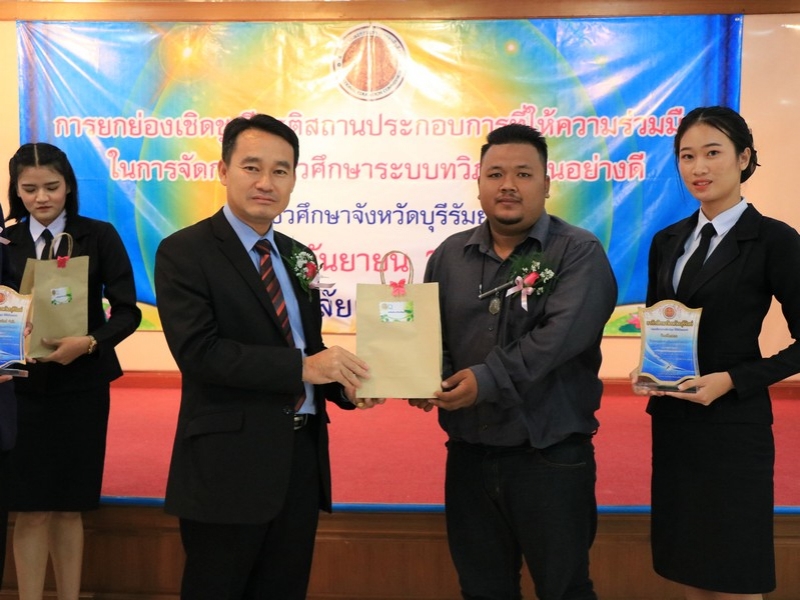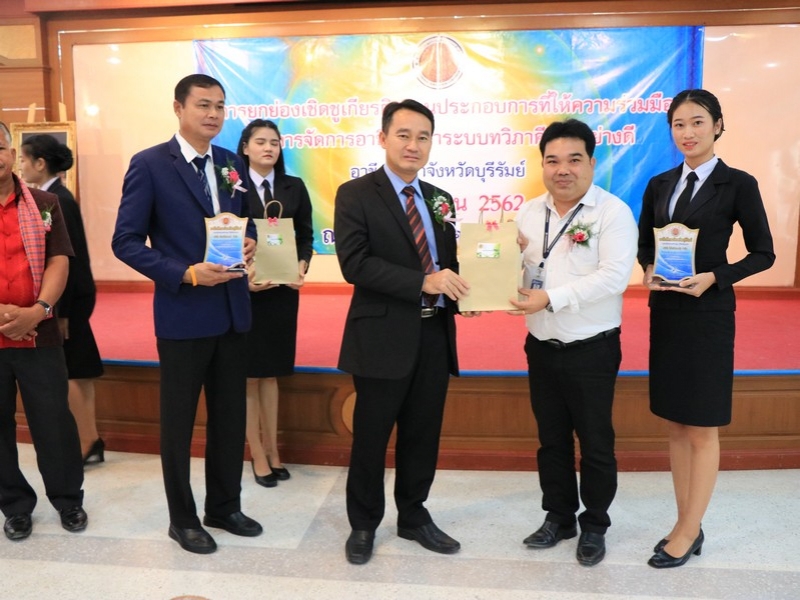 อาชีวศึกษาจังหวัดบุรีรัมย์ จัดพิธีมอบโล่ยกย่องเชิดชูเกียรติสถานประกอบการที่ให้ความร่วมมือในการจัดการอาชีวศึกษาระบบทวิภาคีเป็นอย่างดี ประจำปี 2562 ในวันที่ 24 กันยายน 2562 ณ ห้องประชุมบุรีรายา วิทยาลัยเทคนิคบุรีรัมย์