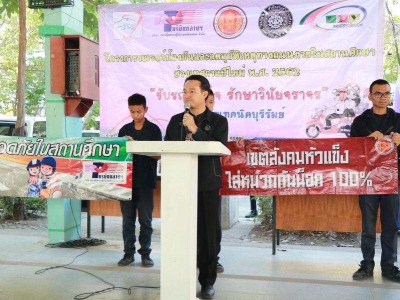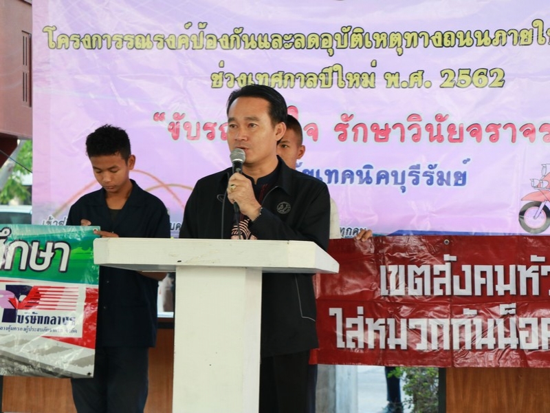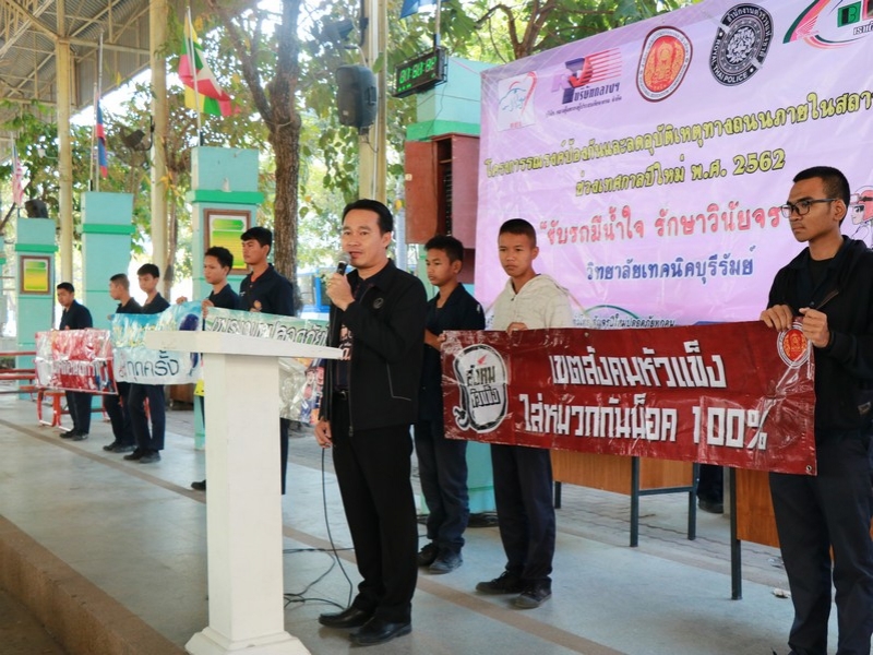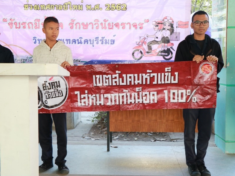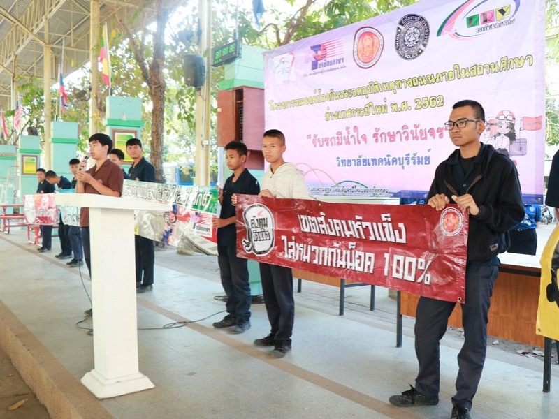 วิทยาลัยเทคนิคบุรีรัมย์ ร่วมกับ กรมการขนส่งทางบก สำนักงานตำรวจแห่งชาติ บริษัทกลางคุ้มครองผู้ประสบภัยจากรถ จำกัด บริษัท BRY บุรีรัมย์ ร่วมพิธีเปิดโครงการรณรงค์ป้องกันและลดอุบัติเหตุทางถนนภายในสถานศึกษา ช่วงเทศกาลปีใหม่ พ.ศ. 2562 ในวันที่ 26 ธันวาคม 25
