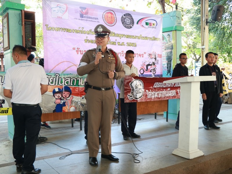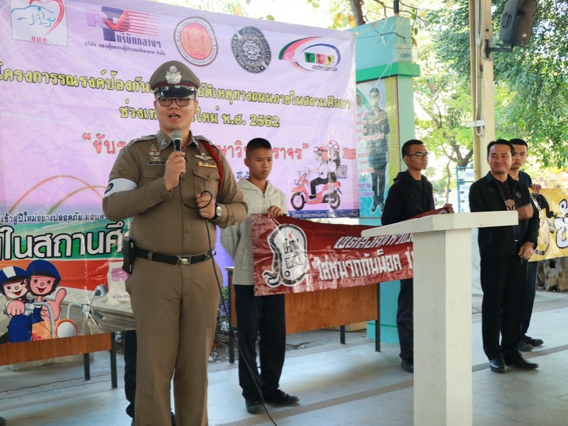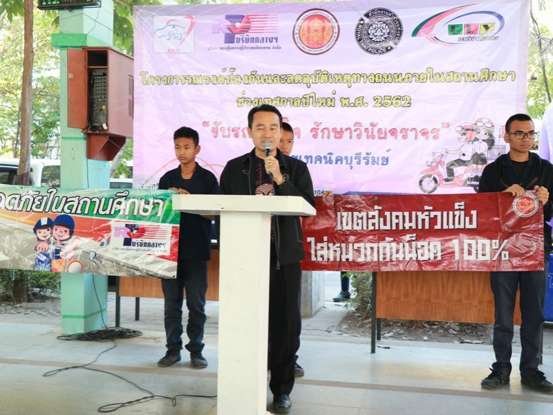 การรณรงค์ป้องกันและลดอุบัติเหตุทางถนนภายในสถานศึกษา ช่วงเทศกาลปีใหม่ พ.ศ. 2562