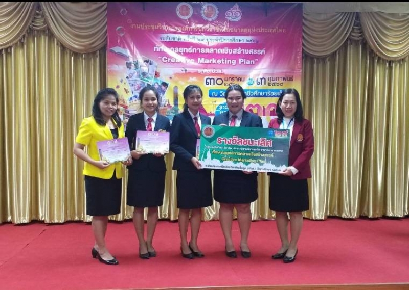 - รางวัลชนะเลิศ การแข่งขันทักษะวิชาชีพ ทักษะกลยุทธ์การตลาดเชิงสร้างสรรค์ "Creative Marketing Plan" ระดับ ปวส.