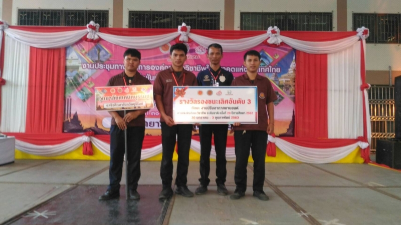 - รางวัลรองชนะเลิศอันดับ 3 การแข่งขันทักษะวิชาชีพ ทักษะงานปรับอากาศยานยนต์ ระดับ ปวส.