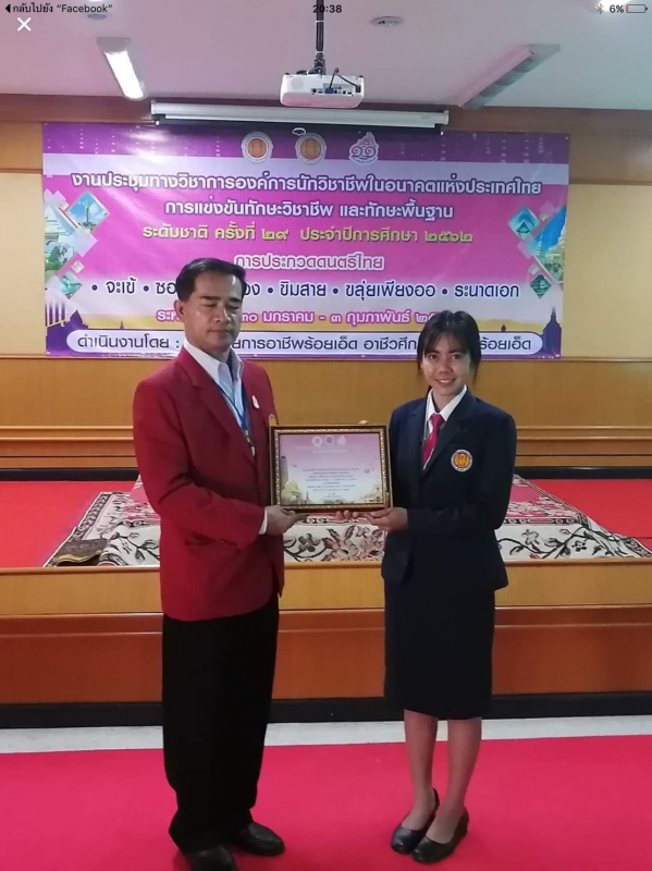 - รางวัลรองชนะเลิศอันดับ 1 การแข่งขันทักษะวิชาชีพ ทักษะพิมพ์อังกฤษด้วยคอมพิวเตอร์ ระดับ ปวช.