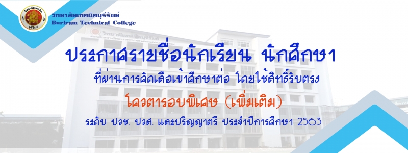 คลิกลิงค์ รายชื่อนักศึกษาที่ผ่านการคัดเลือกเข้าศึกษาต่อ รอบโควตาพิเศษ (เพิ่มเติม).pdf
