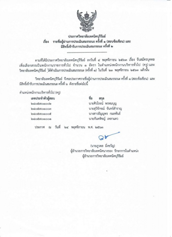 ประกาศวิทยาลัยเทคนิคบุรีรัมย์ รายชื่อผู้ผ่านการประเมินสมรรถนะ ครั้งที่ 1 (สอบข้อเขียน) และมีสิทธิ์เข้ารับการประเมินสมรรถนะครั้งที่ 2