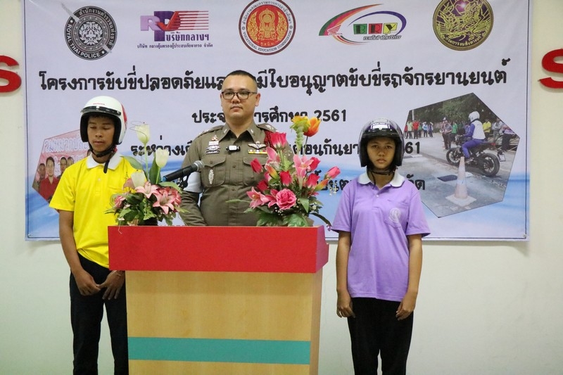 พิธีเปิดโครงการขับขี่ปลอดภัยและขอมีใบอนุญาตขับขี่รถจักรยานยนต์ ประจำปีการศึกษา 2561