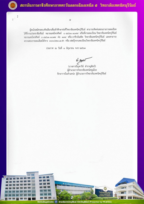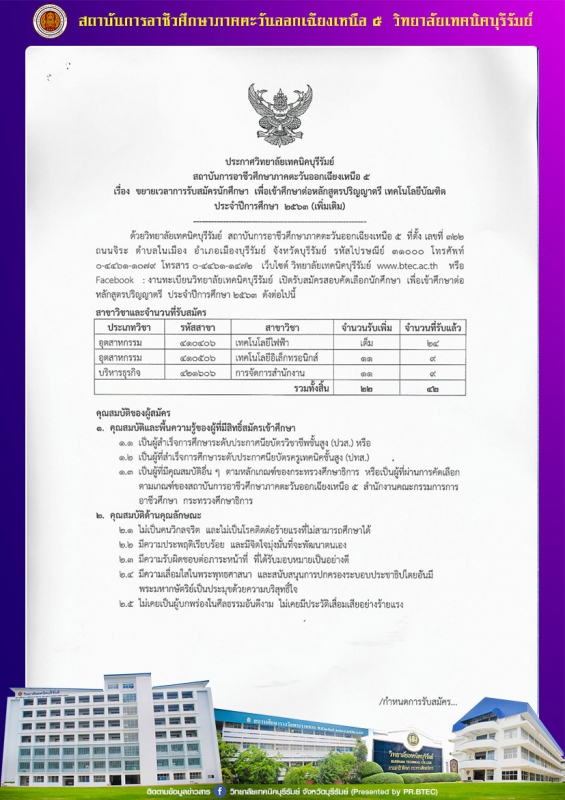 รับสมัครนักศึกษาเข้าศึกษาต่อ ระดับปริญญาตรี (เพิ่มเติม)