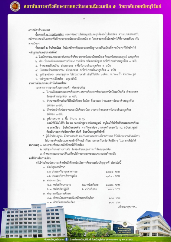 รับสมัครนักศึกษาเข้าศึกษาต่อ ระดับปริญญาตรี (เพิ่มเติม) 3 สาขาวิชา  โดยสามารถสมัครด้วยตนเองตั้งแต่วันนี้ - 9 มิถุนายน 2563 นี้ ในวันและเวลาราชการ