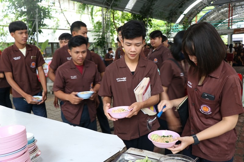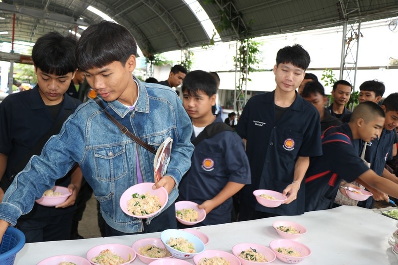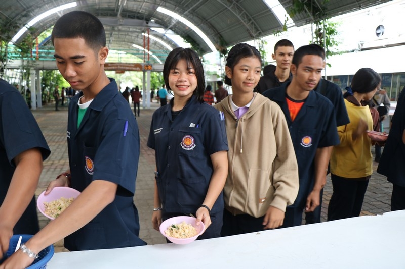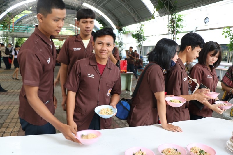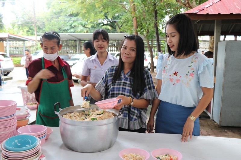 วิทยาลัยเทคนิคบุรีรัมย์ ดำเนินโครงการโรงทานกล้วย กล้วย ครั้งที่ 234 ปีที่ 8 ในวันศุกร์ที่ 20 กันยายน 2562 ณ ลานขจีวรรณ วิทยาลัยเทคนิคบุรีรัมย์ เมนู ข้าวผัดไข่ใส่หมู, ขนมไข่หงส์