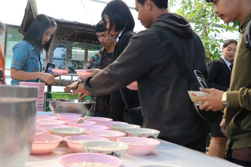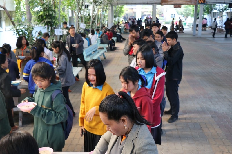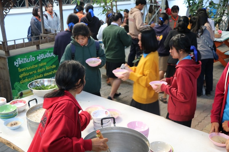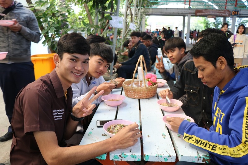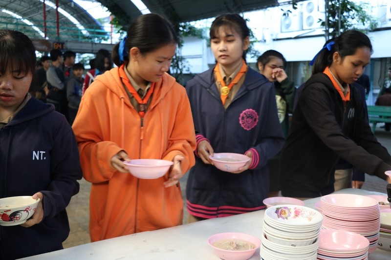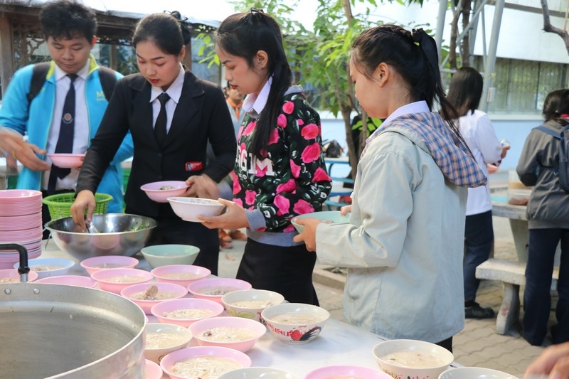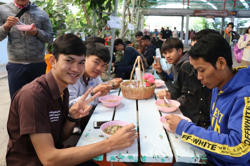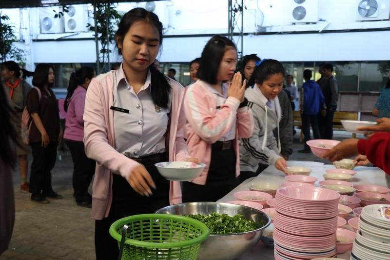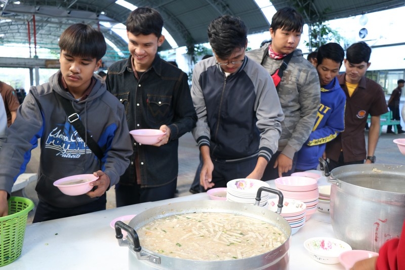 วิทยาลัยเทคนิคบุรีรัมย์ ดำเนินโครงการโรงทานกล้วย กล้วย ครั้งที่ 239 ปีที่ 8 ในวันศุกร์ที่ 13 ธันวาคม 2562 ณ ลานขจีวรรณ วิทยาลัยเทคนิคบุรีรัมย์ เมนู ข้าวต้มหมู