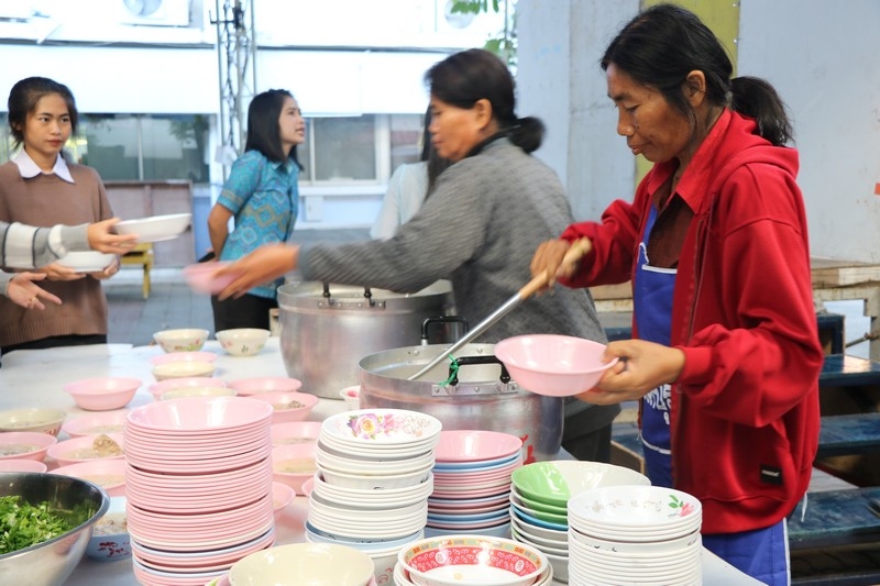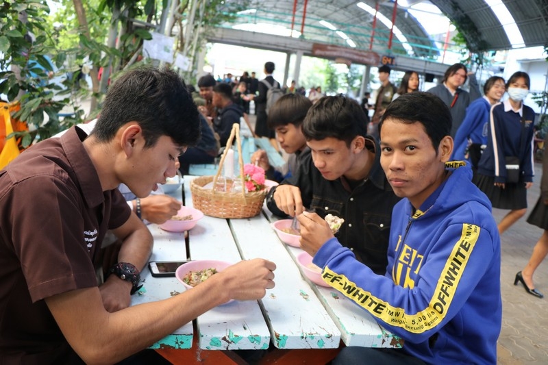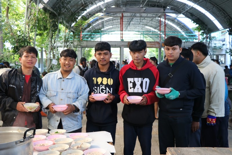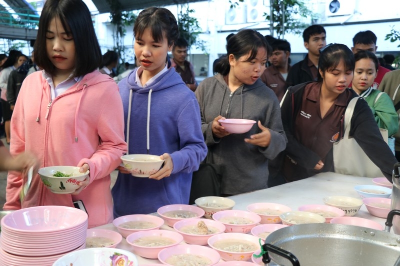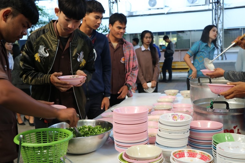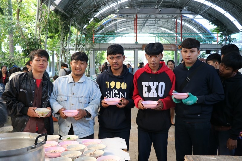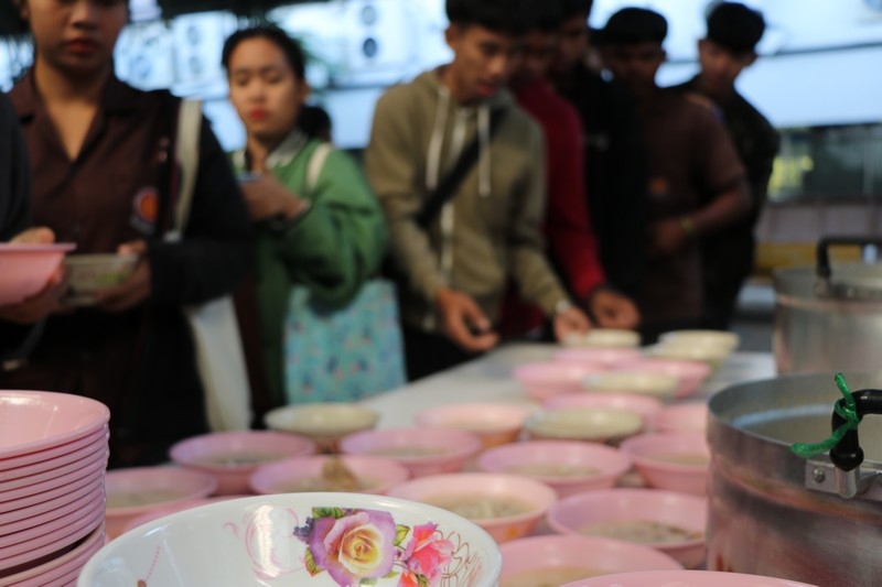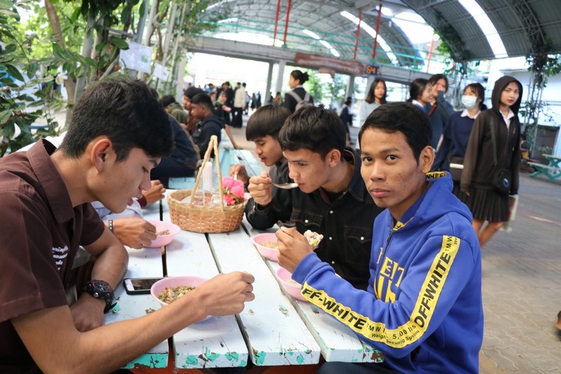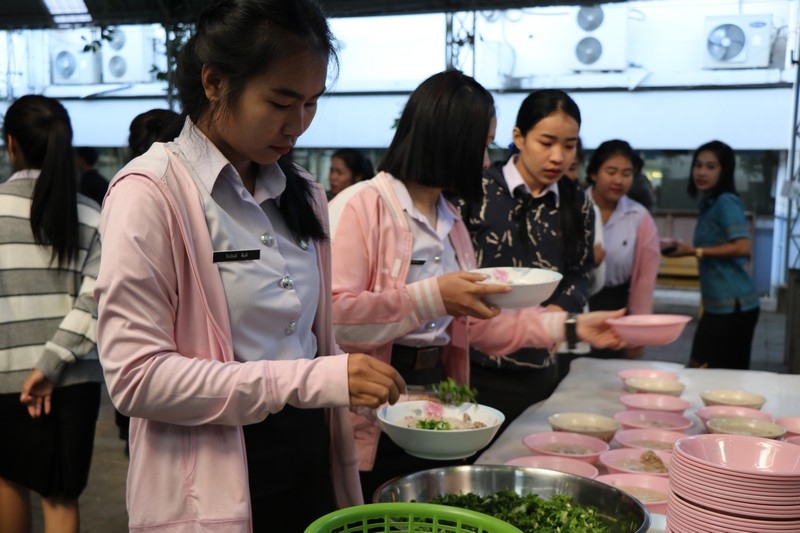 วิทยาลัยเทคนิคบุรีรัมย์ ดำเนินโครงการโรงทานกล้วย กล้วย ครั้งที่ 239 ปีที่ 8 ในวันศุกร์ที่ 13 ธันวาคม 2562 ณ ลานขจีวรรณ วิทยาลัยเทคนิคบุรีรัมย์ เมนู ข้าวต้มหมู