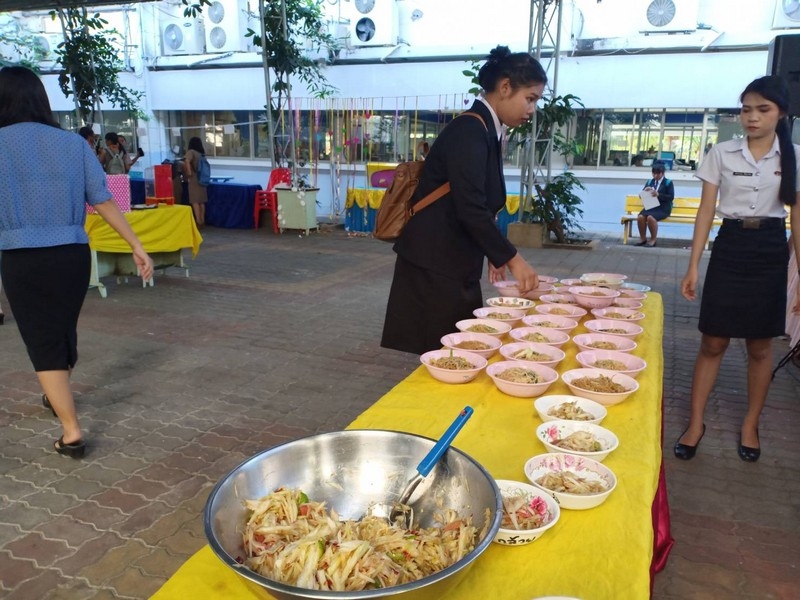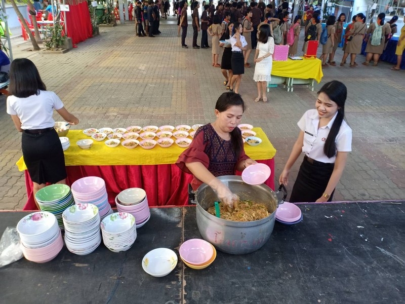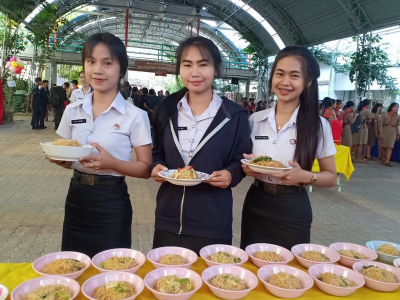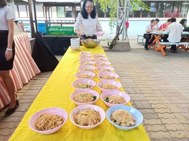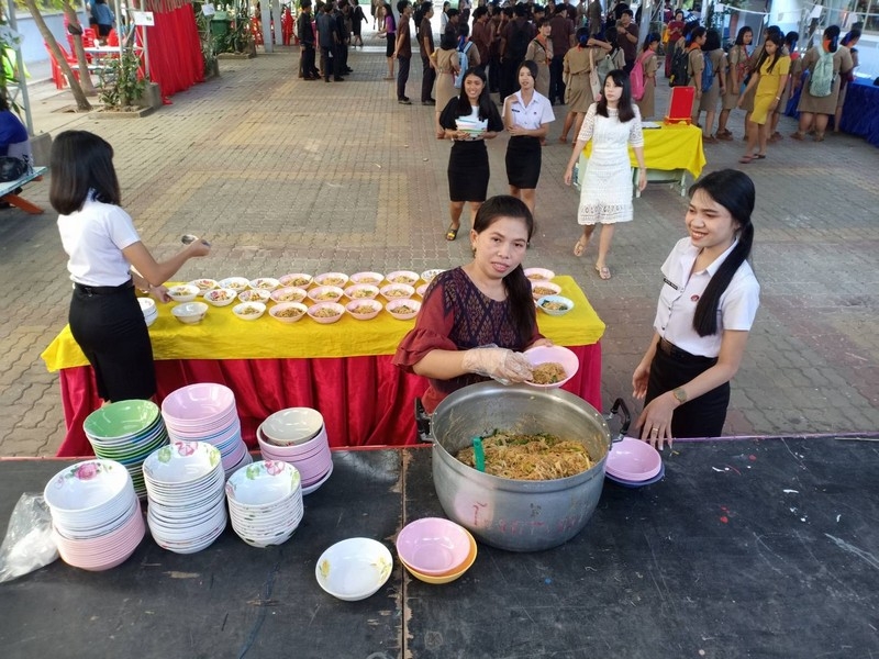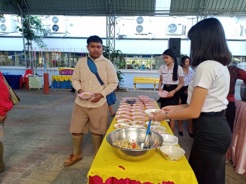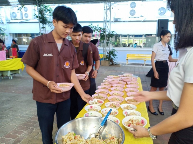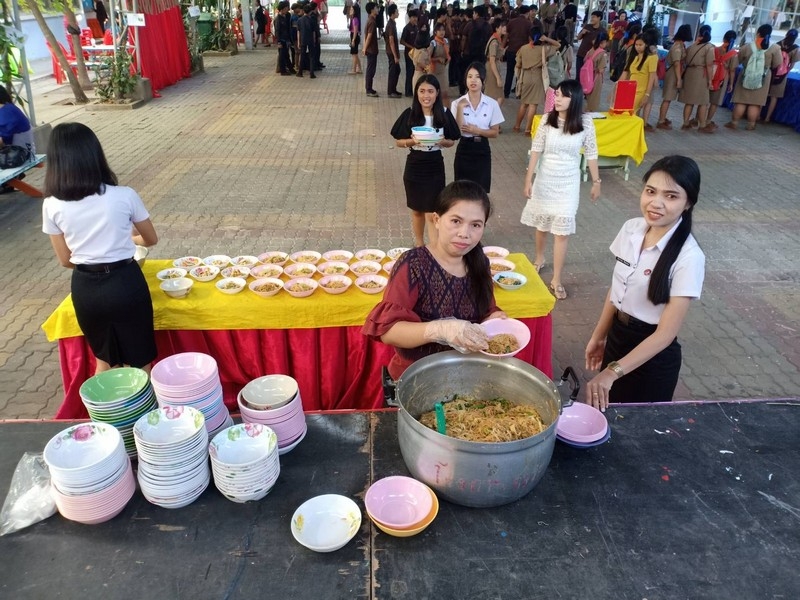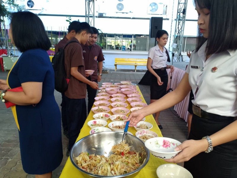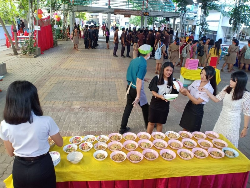 วิทยาลัยเทคนิคบุรีรัมย์ ดำเนินโครงการโรงทานกล้วย กล้วย ครั้งที่ 243 ปีที่ 8 ในวันศุกร์ที่ 14 กุมภาพันธ์ 2563 ณ ลานขจีวรรณ วิทยาลัยเทคนิคบุรีรัมย์ เมนู ผัดหมี่ ส้มตำ