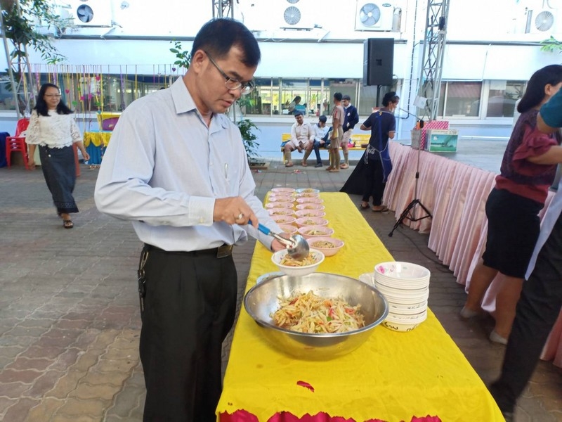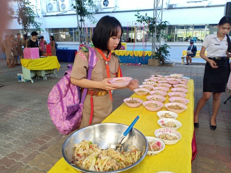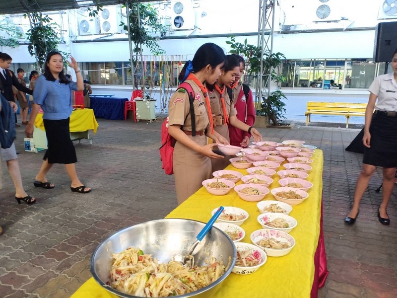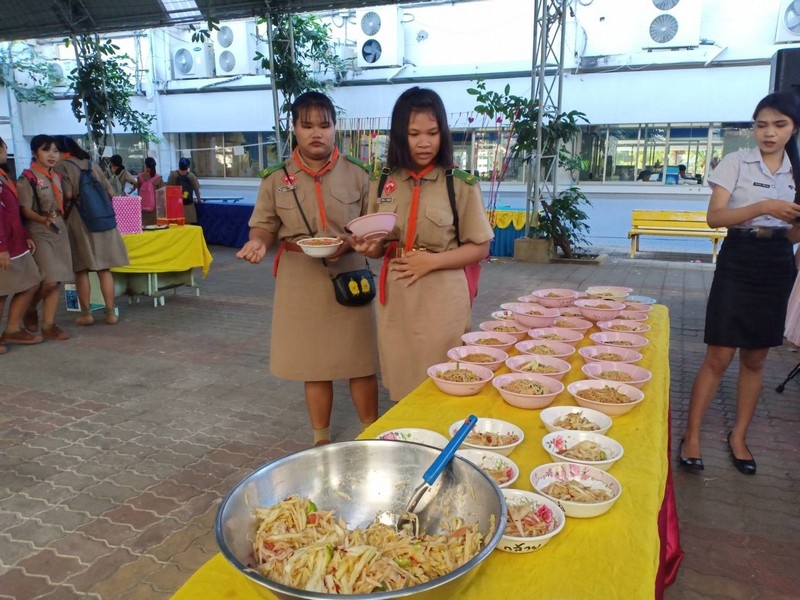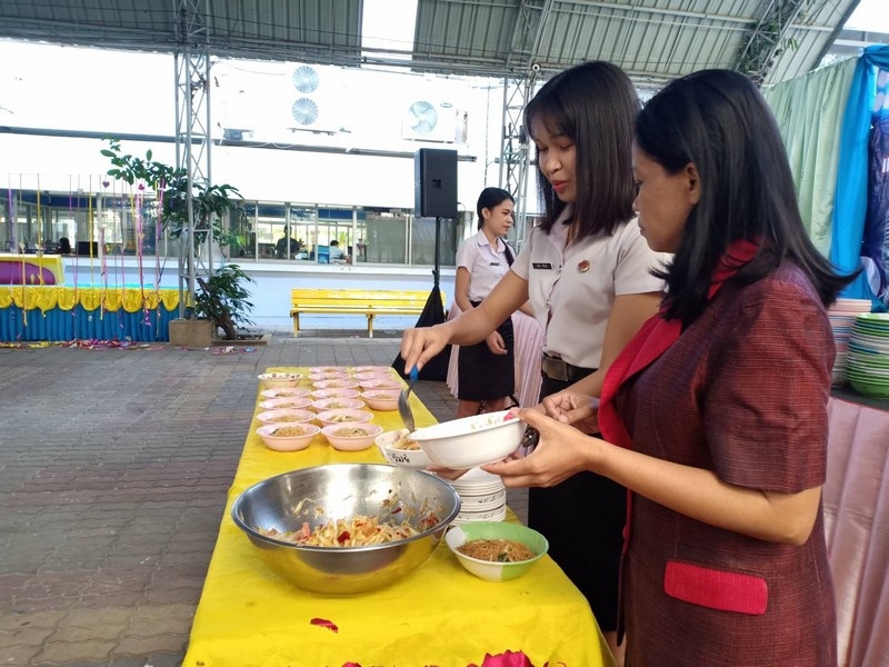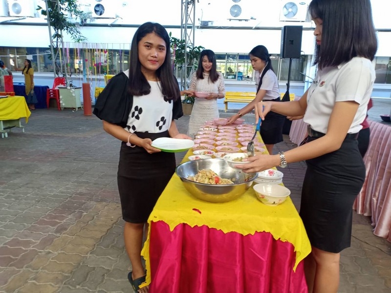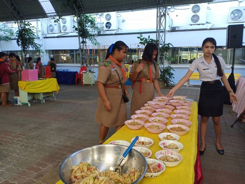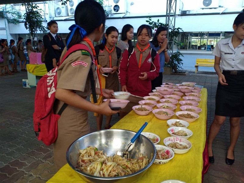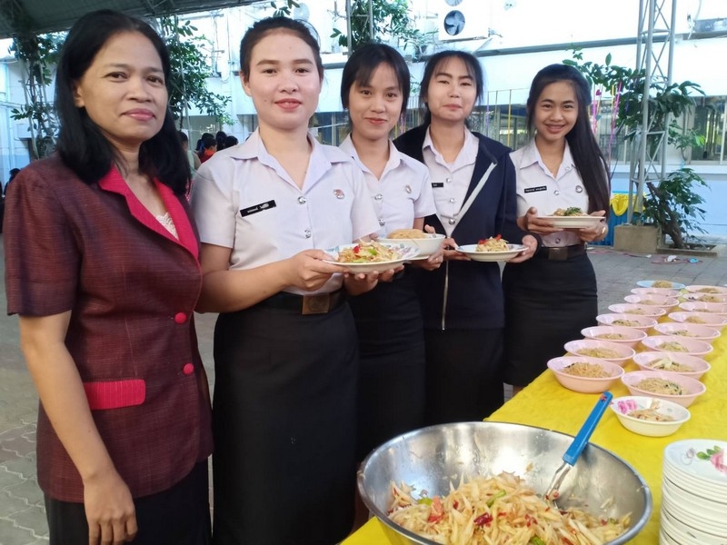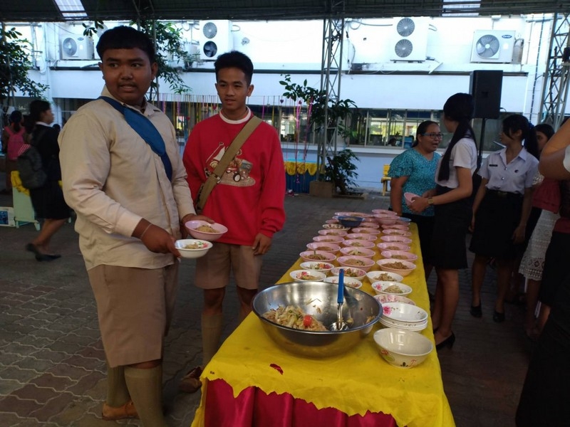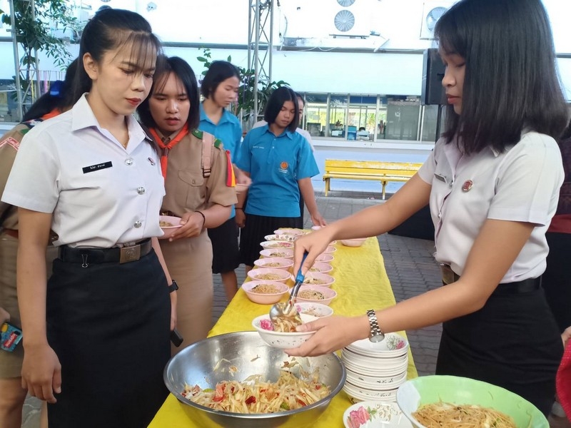วิทยาลัยเทคนิคบุรีรัมย์ ดำเนินโครงการโรงทานกล้วย กล้วย ครั้งที่ 243 ปีที่ 8 ในวันศุกร์ที่ 14 กุมภาพันธ์ 2563 ณ ลานขจีวรรณ วิทยาลัยเทคนิคบุรีรัมย์ เมนู ผัดหมี่ ส้มตำ